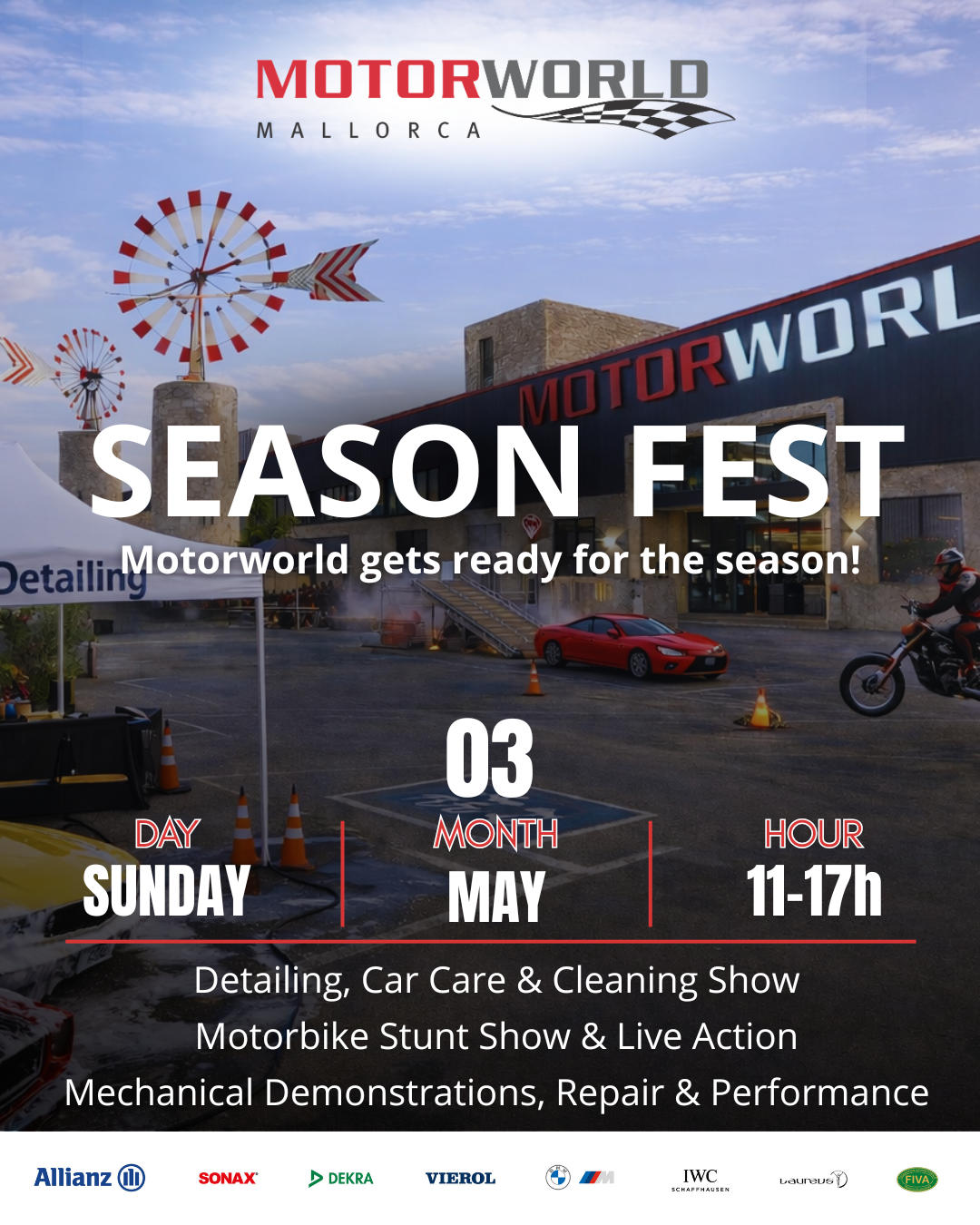 Am 03.05.2026 wird die Motorworld Mallorca zum Treffpunkt für alle Fahrzeugliebhaber! Von 11 bis 17 Uhr erwartet dich ein actionreicher Tag unter dem Motto: Fit für die neue Saison.