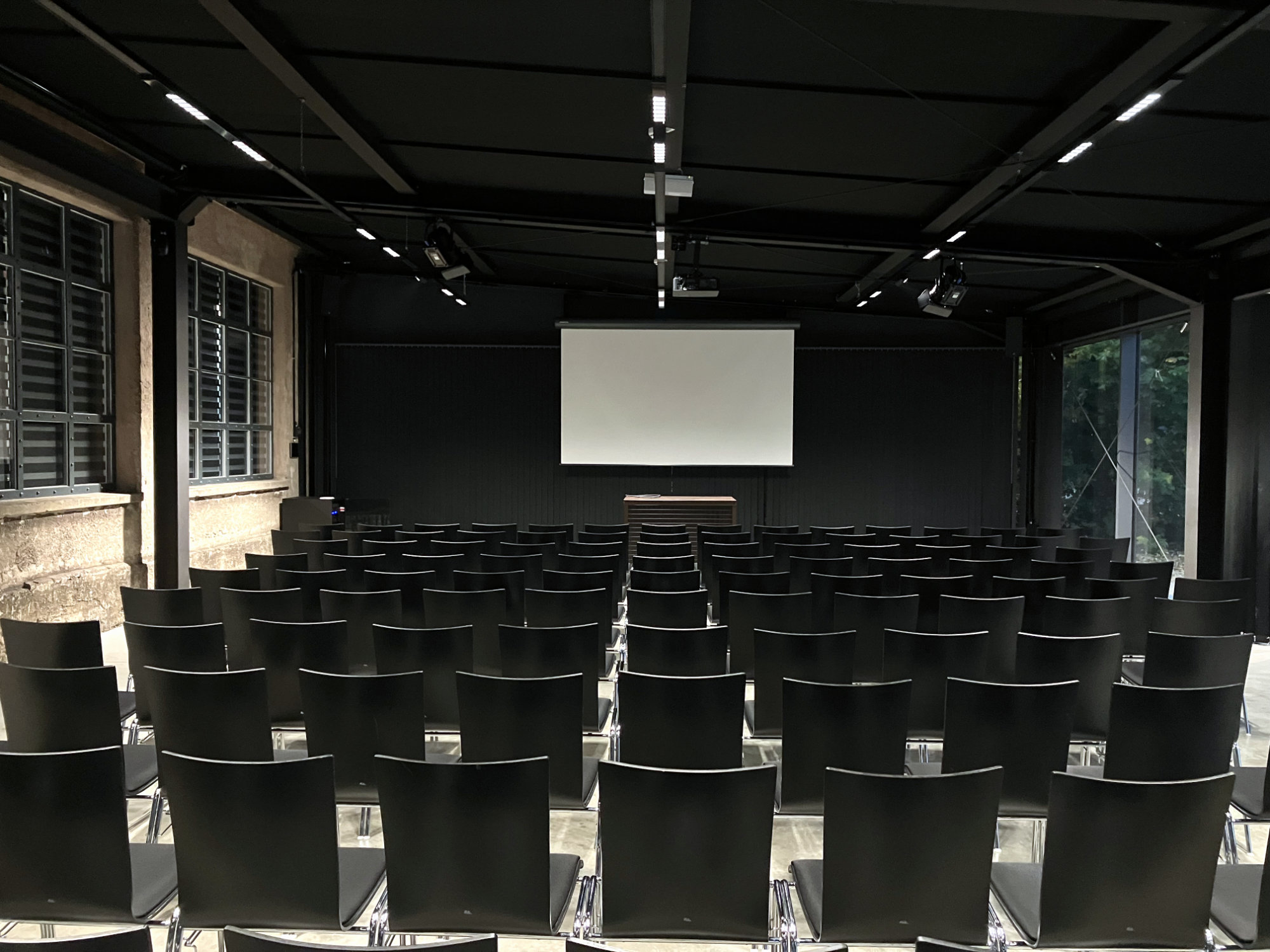 Die Black Box inklusive Firestation in Gebäude 10 ist ein flexibler Raum ohne viel Dekoration für verschiedenste Events. Die großzügige Fläche (250 m²) bietet Platz für maximal 200 Personen und ermöglicht eine kreative Gestaltung.